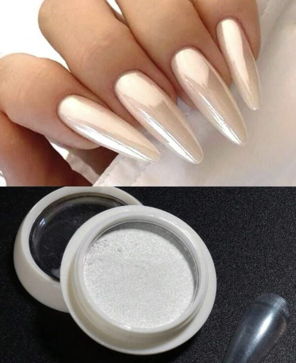 Благодаря ультратонкому помолу такая микродиспесперсная пыль очень легко наносится, не сбивается в комочки. Попавшие на такие ноготки лучики света отражаются как от настоящего жемчуга. Такое декорирование ногтевой пластины считается скромным, но модным и изящным. Светлый сияющий оттенок идеально дополняет красивые ручки и тонкие пальчики, уместно смотрится при любой маникюрной длине. Большой плюс состоит в простоте использования и совместимости с практически любыми материалами.